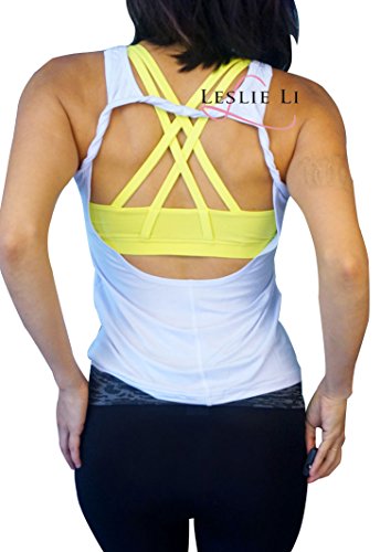 Leslie Li Women's Open Back Fitness Muscle Tank Yoga Shirt Top WHITE YT-03