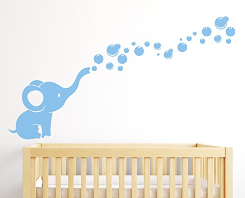 Elephant Bubbles Nursery Wall Decal Room Decor (Ice Blue)