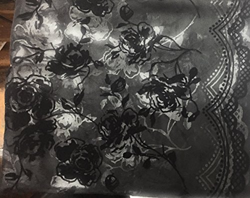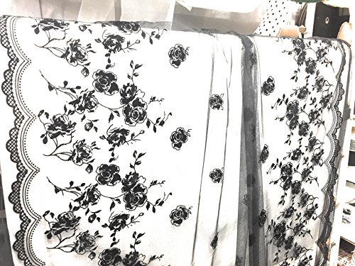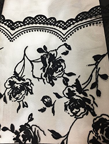 Black Tulle with Velvet Flocking Fabric 60" Flower Design with Border 2 Yards