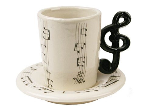 Studio : Life Arts Publisher : Life Arts Product Description For the love of music ? this super funk Treble Clef Espresso Cup will jazz up your Espresso every day. A very imaginative handmade design with a unique three-dimensional Treble Clef handle and a musical note design glazed on the cup and saucer. Dishwasher safe. Microwave friendly. The colour will never fade. 0