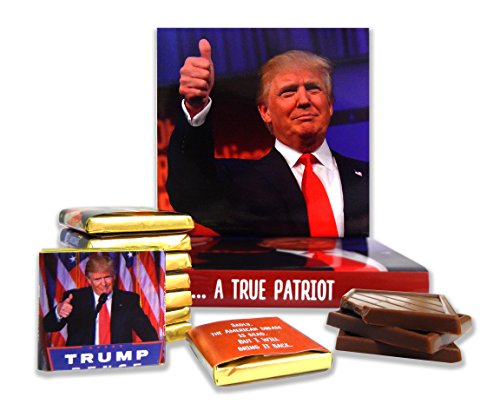 -. Binding : Grocery -. Brand : DA CHOCOLATE -. Feature : ➢ Trump style 9 chocolate gift bars / ➢ High happy hormone content and actual theme / ➢ The tenderest milk chocolate is made from high-quality Belgian raw -. IsAdultProduct : 0 -. Label : DA CHOCOLATE -. Manufacturer : DA CHOCOLATE -. PackageQuantity : 1 -. ProductGroup : Grocery -. ProductTypeName : GROCERY -. Publisher : DA CHOCOLATE -. Studio : DA CHOCOLATE -. Title : Chocolate gifts "Trumps" are funny gifts for everyone! ♛ (9 chocolate bars) Dark