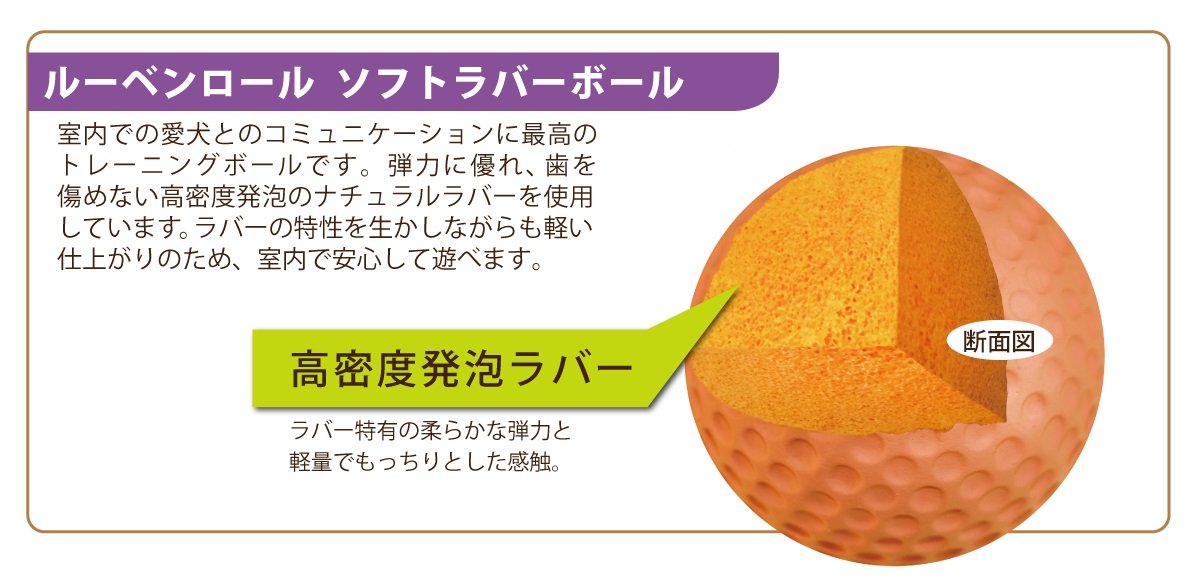 室内での愛犬とのコミュニケーションに最高の、トレーニングボールができました。弾力に優れ歯を傷めない高密度発泡のナチュラルラバーを使用しております。ラバーの特性を生かしながら軽い仕上がりで室内でも安心してあそべます。