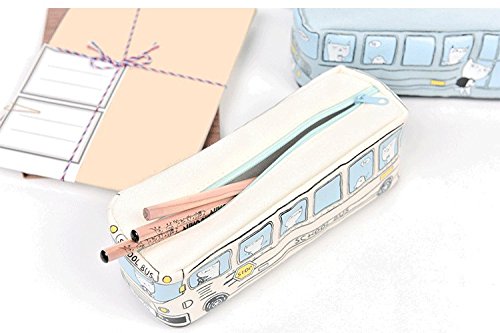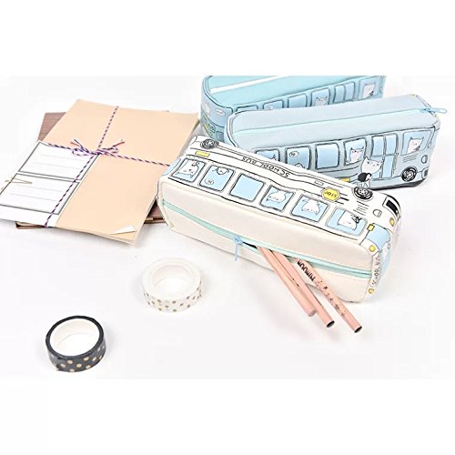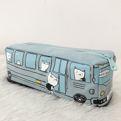 Created Cute Bus Pencil bag Pencil Case Pencil Stationery For School/Office (Light Blue)