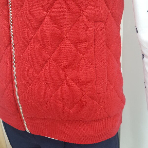 앞판 다이아 퀼팅 충전재 스타일로 심플한 컬러감의 앞판과 달리 뒷판 부클 스트라이프패턴과 위트넘치는 PUG캐릭터를 활용한 인타샤 패턴이 돋보이는 방풍안감 풀집업 베스트입니다^^