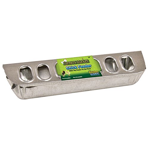 -. Feature : Slide top feeder for the flock / Special size, perfect for chicks / Durable, sanitary metal construction / Prevents spilled or wasted food / Prevents chickens from scratching or sitting in feedUPC : 791611120590Color : SILVERSize : 12 INCHLength
