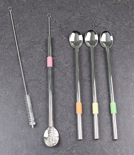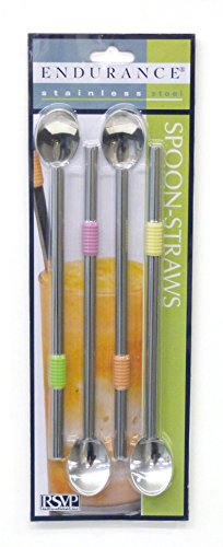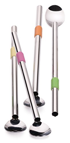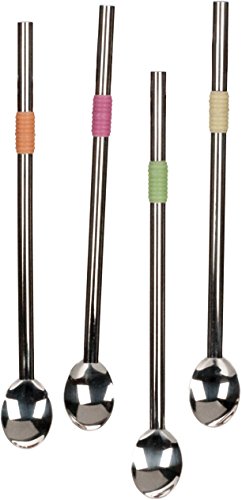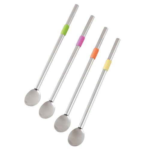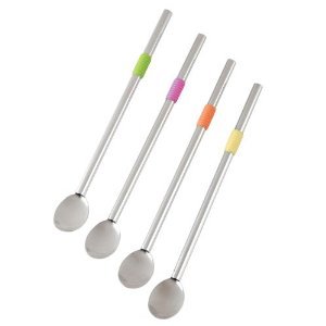 Product Description8 inch long Colorful silicone bands to help identify drinks and provide a nice grip for sipping and twirling. Made of durable, reusable 18/8 stainless steel Dishwasher Safe0