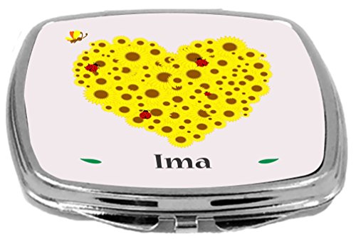 Rikki Knight Name Yellow Flowers Heart on Pink Background Design Compact Mirror, Ima, 17 Ounce