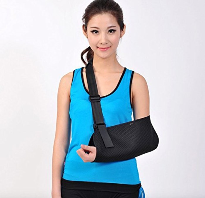左右どちらでも肩に負担を掛けないソフトパッド設計 フリーサイズ:身長(150cm-180cmくらいまで) 左右兼用で、腕や肩の怪我、骨折などどちらの場合でも使える。 アタッチメントで簡単に調節ができるので1人でも着脱が可能。