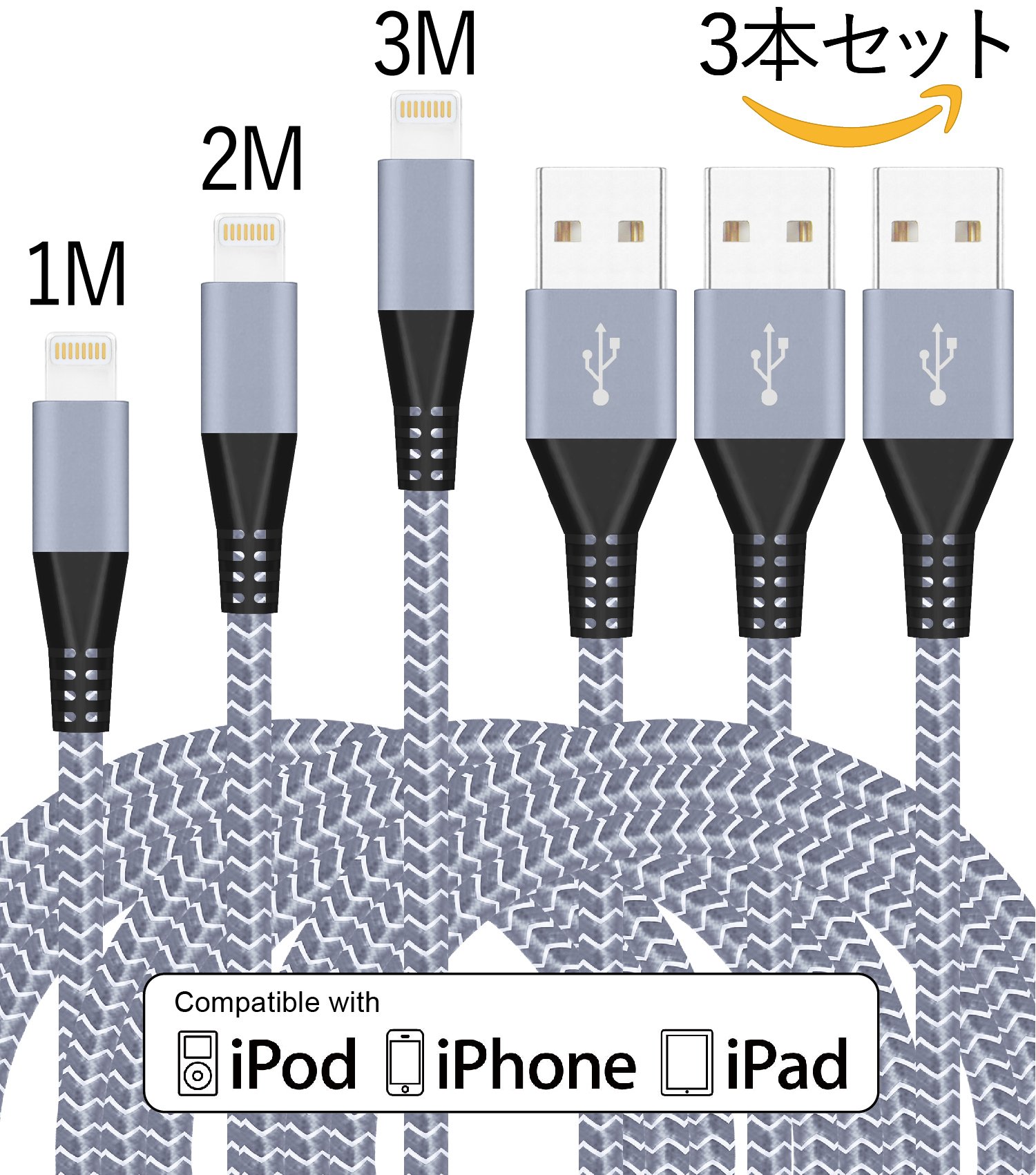 3 sets 1M / 2M / 3M High speed nylon knitting fast charging lightning USB cable.
