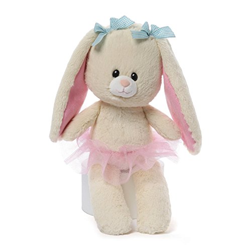 -. Binding : Toy -. Brand : GUND -. EAN : 0028399080984 -. Feature : Beige bunny ballerina Christine makes a perfect Easter gift / Motion activated sound toy giggles and makes cute bouncing sounds during play / Fabric tutu, blue gingham bows, and floppy ears for whimsical charm / Surface-washable; ages 1+ / 12 inch height (30.5 cm) -. IsAdultProduct : 0 -. Label : Gund -. Manufacturer : Gund -. Model : 4050703 -. MPN : 4050703 -. PackageQuantity : 1 -. PartNumber : 4050703 -. ProductGroup : Toy -. ProductTypeName : TOYS_AND_GAMES -. Publisher : Gund -. Studio : Gund -. Title : GUND Christine Twirl and Whirl Bunny Stuffed Animal -. UPC : 028399080984 -. Warranty : Guaranteed against manufacturing defects