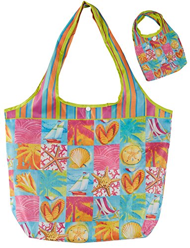 Studio : Cape Shore Publisher : Cape Shore Product Description Cape Shore finds and offers innovative souvenirs and mementos of everyvacation to help you ease back into your happy place. The Beach Patchwork travel tote features a colorful beach icon design, snap closure,and includes a mini storage bag. Measures 17'L x 26'W x 5.5'H. 0