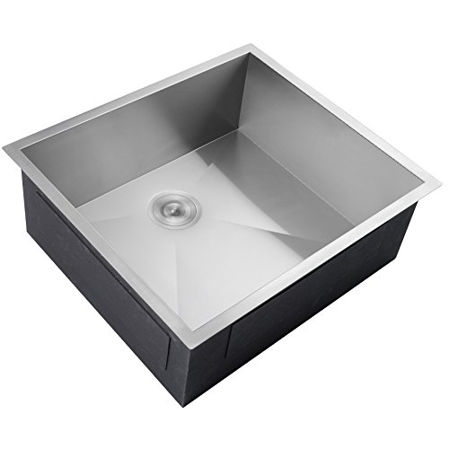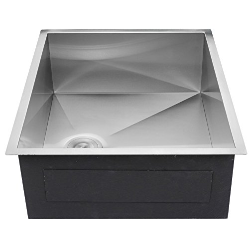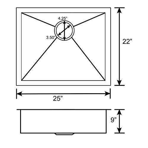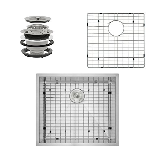 Perfetto Kitchen and Bath 25" x 22" x 9" Handmade 18 Gauge Stainless Steel Undermount Single Basin Kitchen Sink w/ Dish Grid and Drain Combo Set
