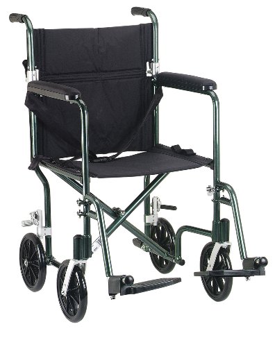 Drive Medical FW19GR Fly-Weight Transport Chair, 19 Inch, Green