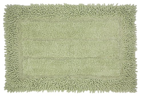 Spura Home 17"x24" Sage Shag Border W/Horizontal Striped Center Bath Mat
