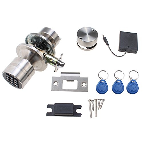 - Feature : Reprogrammable Master code and user code (for guests) / Can set 1 independent master code + 9 user code + 3 x Electronic keys user, easy management / Can program 1 master code and 9 user codes - Pins can have from 1 to 15 digits / Fits in standard door knob installation hole - Adjustable latch backset 2 3/8" to 2 3/4" / Equip with backup battery power adapter to use when out of battery