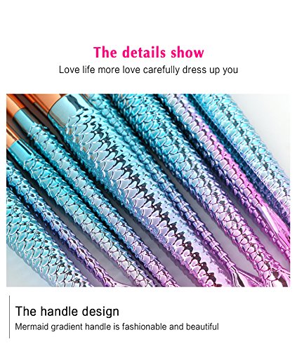 CoKate 10pcs Mermaid Makeup Brush Set Synthetic Kabuki Foundation Blending Blush Eyeliner Face Powder Brush Makeup Brush Kit Beauty Cosmetic Tools