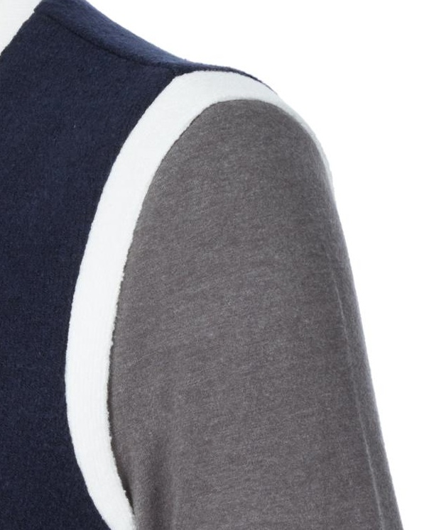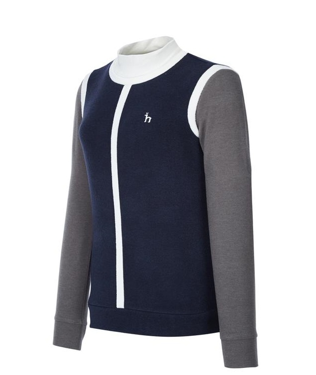 목을 감싸주는 하이넥 디자인의 컬러감이 돋보이는 라인 배색이 어우러저