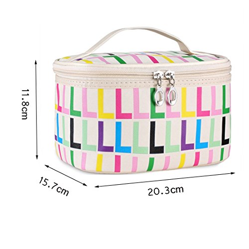 -. Feature : Size:20.3*15.7*11.8 cm/8*6.2*4.65 inches / Material:PU leather out side, nylon lining / Multifunctional and can be used as a makeup bag,a toiletry bag or a organizer bag / With easy-to-grip hand strap and convenient to carry,suitable for both home and travel / Slots and wide elastic straps to keep your brushes in order,waterproof,lightwight,dual zipper opening