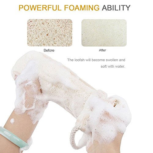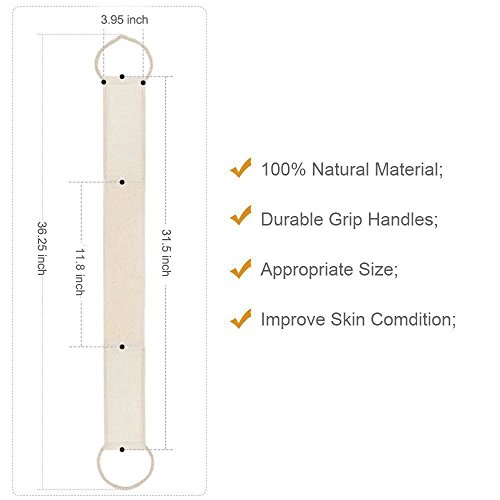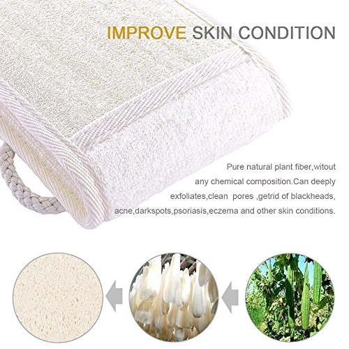 - PERFECT GIFT FOR EVERYONE -- 31.5(in) X 3.14(in),this is the right size loofah back scrubber that allows you to scrub most parts of your body without bending awkwardly.Ideal size tested by men and women with height of 5'2" to 6'2".This valued set of exfoliating loofah back scrubber will be a great valued gift for every body to make them enjoy a smoother,silky,younger looking skin!