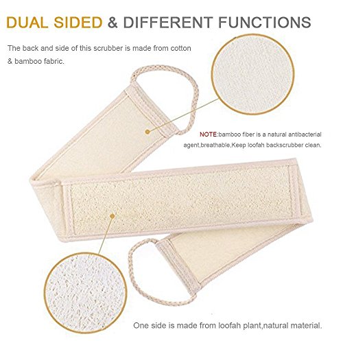 - DEEPLY EXFOLIATE & REJUVENATE YOUR SKIN -- Features natural loofah side for deeply exfoliates & revives the spot in your back be untouched by you.Long straps make it so easy to reach any part of the body.You can massage your skin and clean your pores in your body's areas,like your face,back,neck,shoulders,feet or any others.