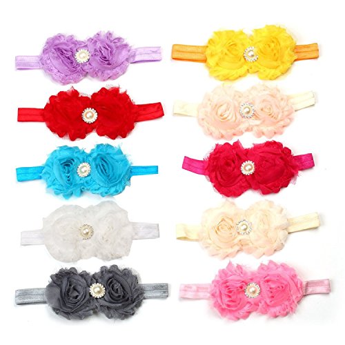 100% New and high quality, Set Include: 10pcs different colors Flower Headbands (as pictures shown)