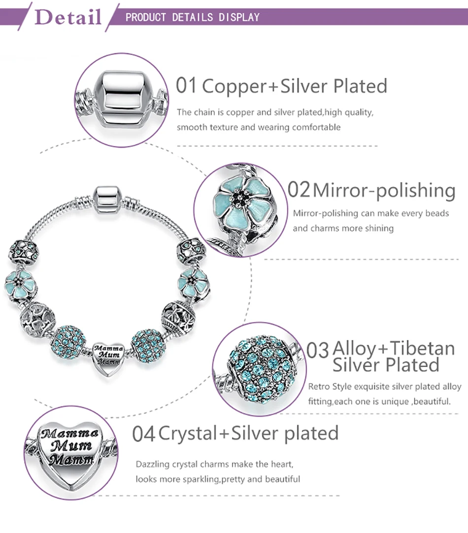 European Bangle bracelet:Murano glass beads bracelet for women pulserial