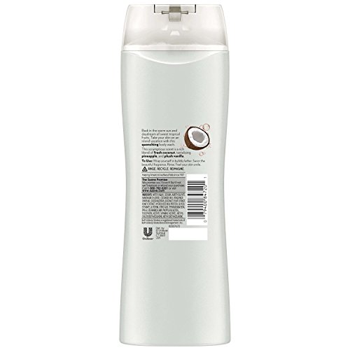 Fragrance: Take your skin on an island vacation with this quenching Tropical Coconut body wash. Bask in the warm sun and daydream of sweet tropical fruits. This scrumptious scent is a rich blend of fresh coconut, tantalizing pineapple, and plush vanilla.
