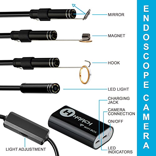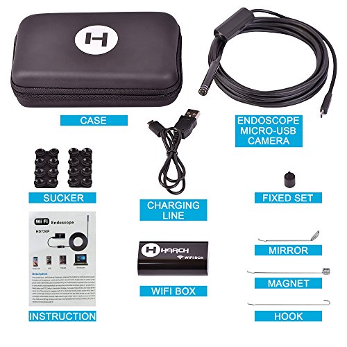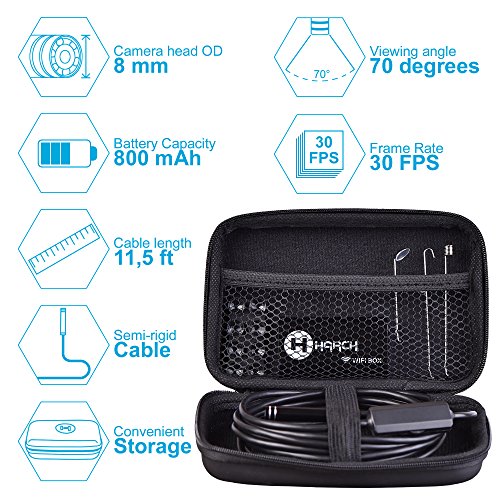 Wireless Endoscope Camera by Harch - 2.0 MP Endoscope, Borescope, HD Waterproof Snake Camera for iOS / Android Smartphones, iPhone, Samsung, Windows - Included 70 Degree