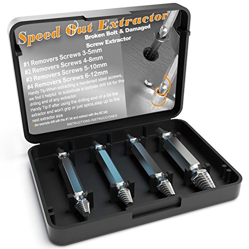-. Title : Speed Out Extractor HSS Broken Bolt and Damaged Screw Extractor 4 Piece Kit Comes with Case. Removes All Kinds of Screws and Bolts. Speed Out Style Dual Tip Design Requires No Drill Bits.