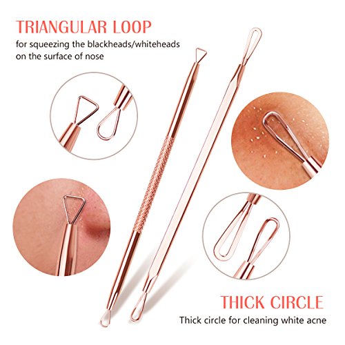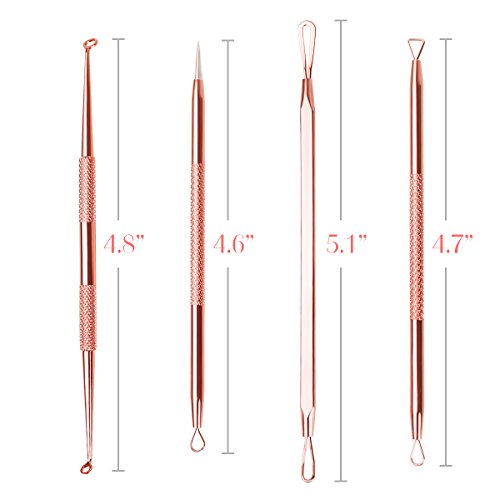 - Multi-function Kit - 4 different extractors with different size loop and shape make you swiftly and effectively get rid of your pesky blackhead,acne and pimple with no irritation