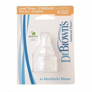 -. Binding : Baby Product -. Brand : Dr. Brown's -. Feature : Level-3 is ideal for feeding infants 6 months and above / Exclusive for Dr. Browns Natural Flow Standard baby bottles / Dishwasher safe-top rack only / Six replacement silicone nipples -. Label : Dr. Browns -. Manufacturer : Dr. Browns -. ProductGroup : Baby Product -. ProductTypeName : BABY_PRODUCT -. Publisher : Dr. Browns -. Studio : Dr. Browns -. Title : Dr. Browns 6 Pack Natural Flow Level 3 Standard Nipple