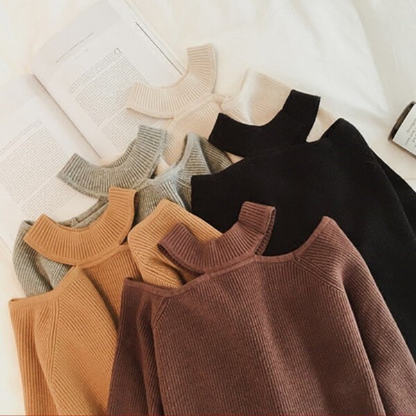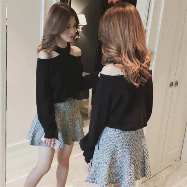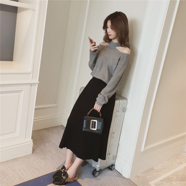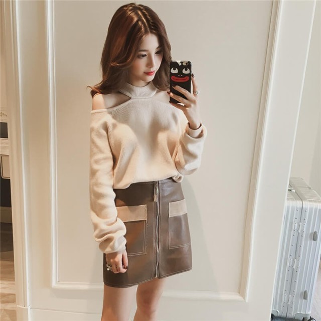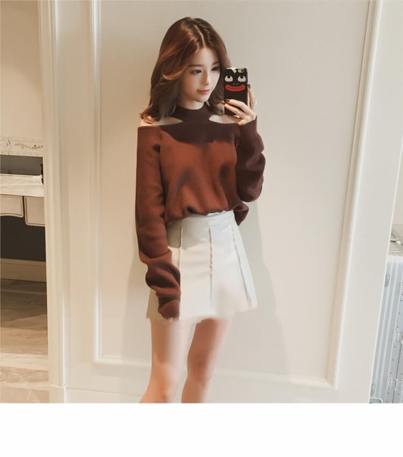 抜け感のある肩見せカットがポイントのニットトップス。