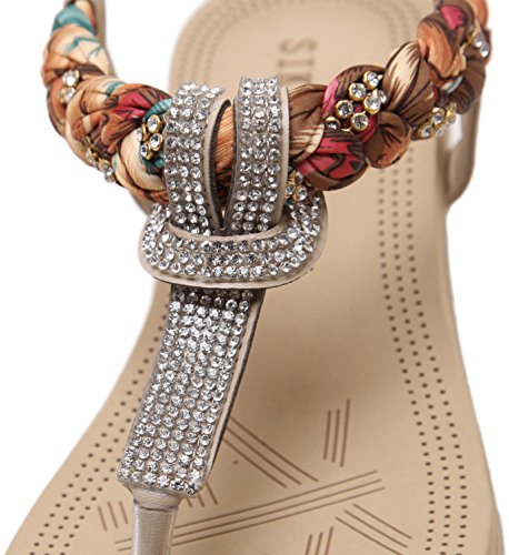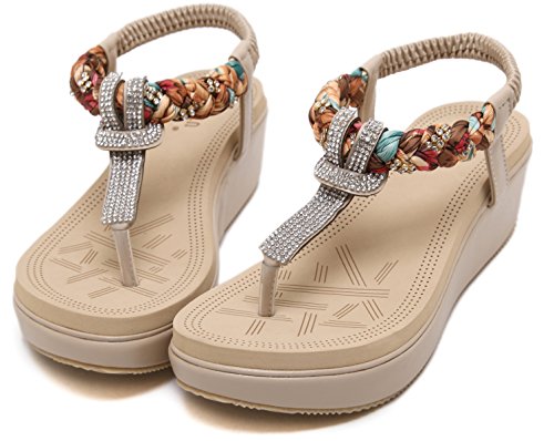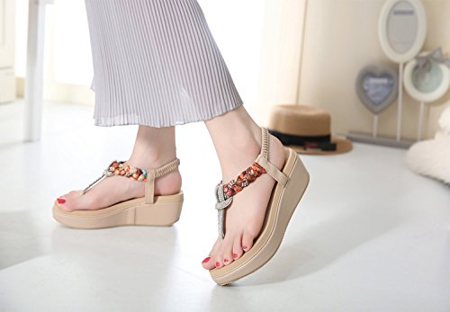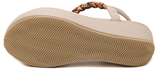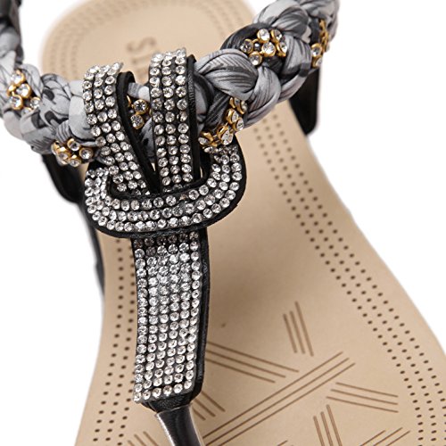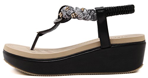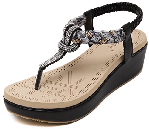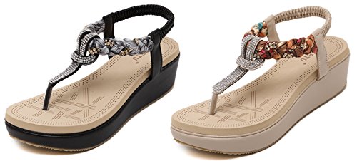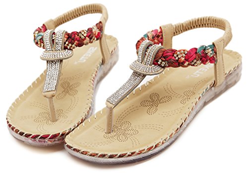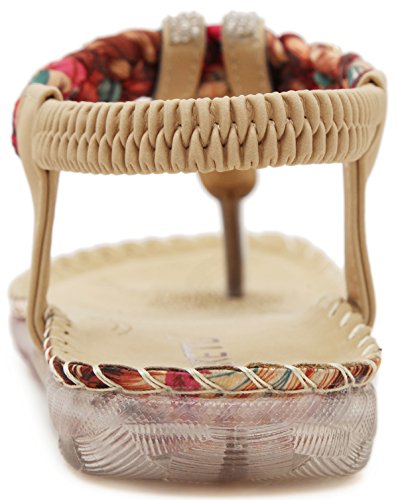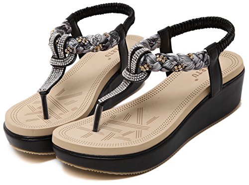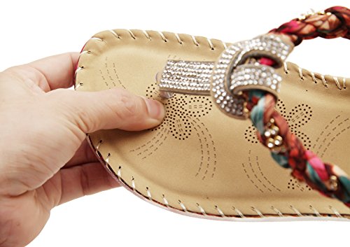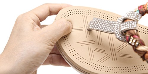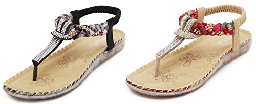 Binding : Apparel Product Description This comfortable elegant SUMMER T-STRAP GLITTER FLORAL THONG SANDALS PLATFORMS N FLATS FOR CHOICE, handmade of selected manmade leather and glitter rhinestones with soft lining and gum rubber sole, has glamour to help you handle most of occasions. The BEST choice for your beach vacation and a gift selection for your close friend as well. 2 colors: black and red; 2 styles: flats and platforms.