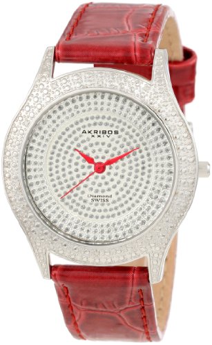 -. Title : Akribos XXIV Women's AKR464RD Brillianaire Diamond Red Swiss Quartz Strap Watch