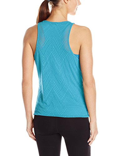 Tank top with patterned burnout outer layer and stretch jersey inner shell featuring scoop neckline with draped pleats
