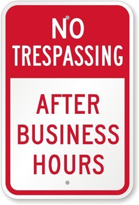 No Trespassing After Business Hours Metal Sign Aluminum Signs 7X10 Inches