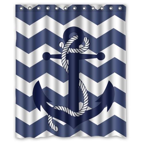 Custom Special Amazing Chevron Anchor Pattern Print With Navy Blue Chevron Zig Zag Waterproof Bathroom Decor,Polyester Fabric Shower Curtains,60(w) x 72(h)