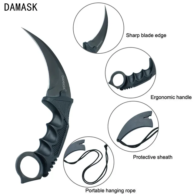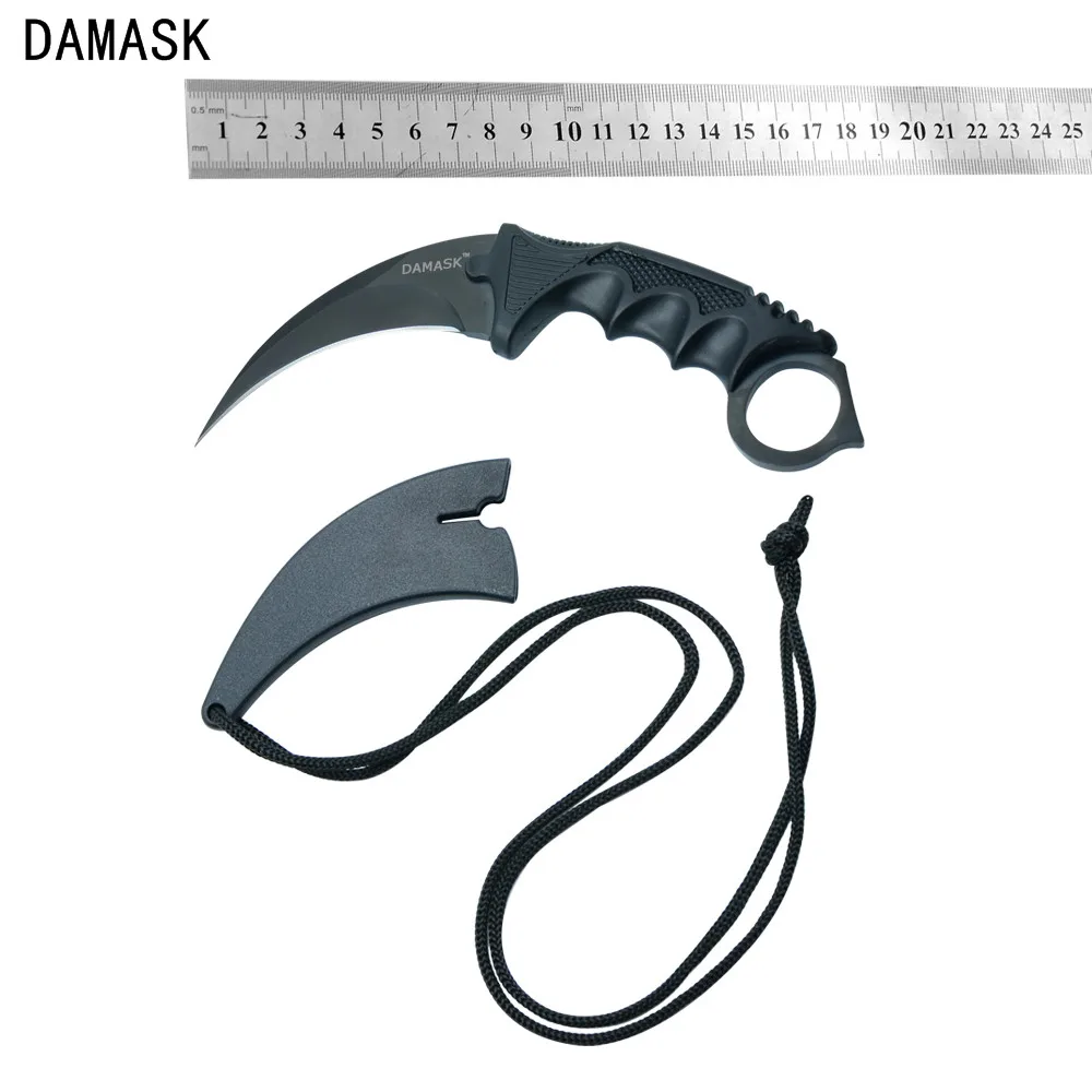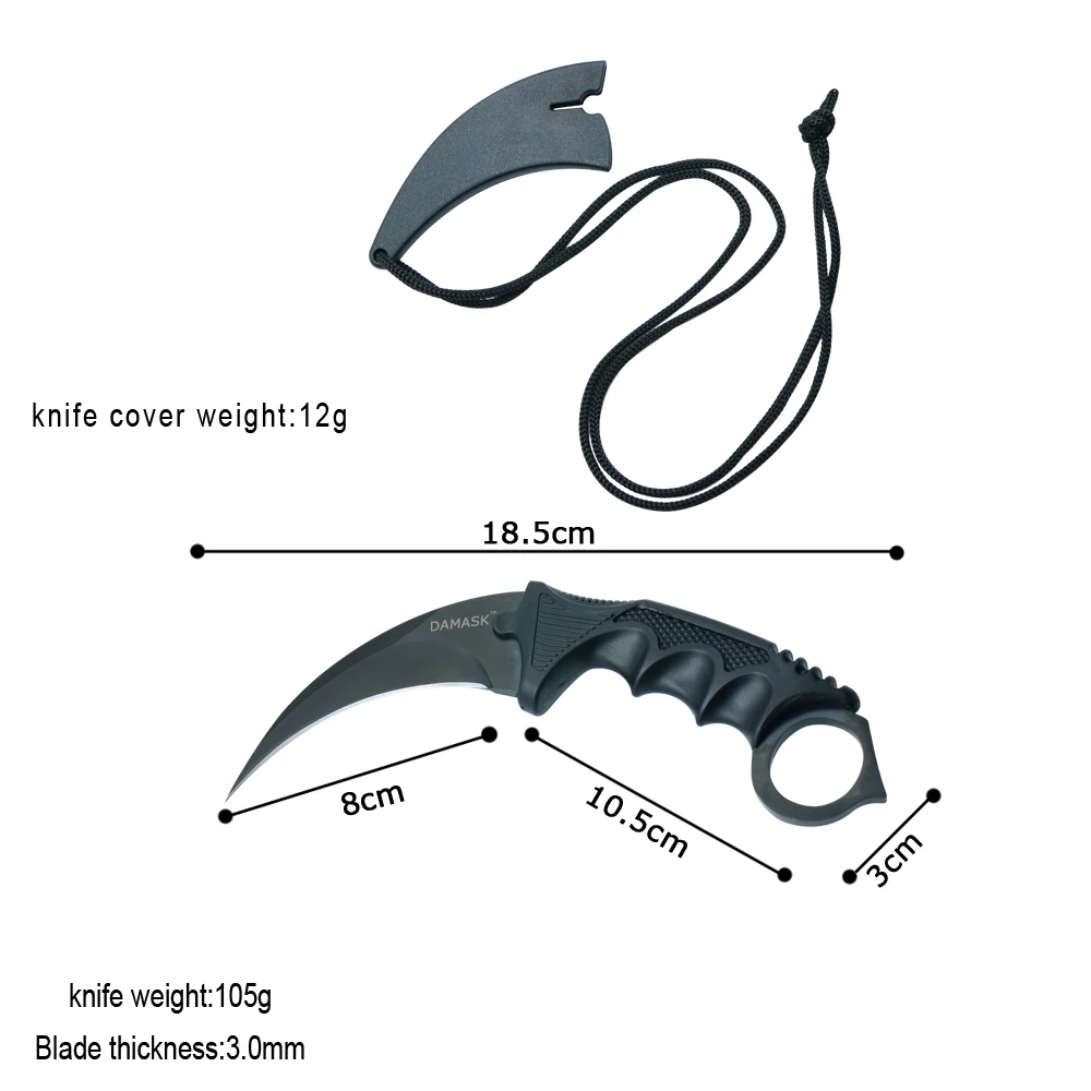 | [해외] 다 새로운 고정 블레이드 나이프 야외 생존 Karambit 블랙 블레이드 미끄럼 핸들 스테인레스 스틸 칼 CS 이동 캠핑 도구 |