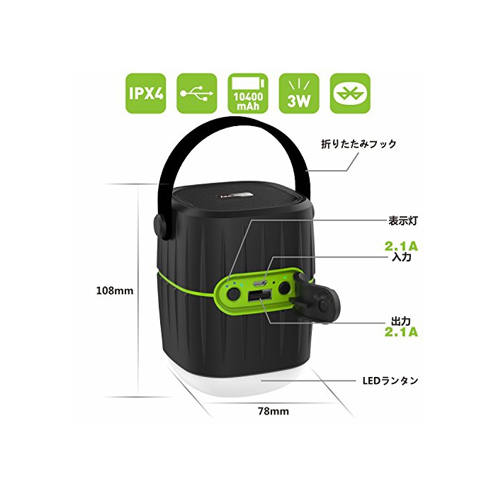원본상품명: Superway LEDランタン 電球色 3-IN-1 多機能 キャンプ ランタン + 10400mAh モバイルバッテリ? + Bluetoothスピ?カ? 防水防災 携?型 テントライト
