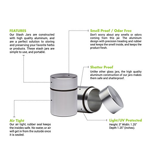 Stash Jar - Airtight Smell Proof Aluminum Herb Container Waterproof, Scent Lock Odor Protection. Beautiful and Discreet Metal Design. Store your Herbs and Spices Securely. Perfect Size for Travel (1)