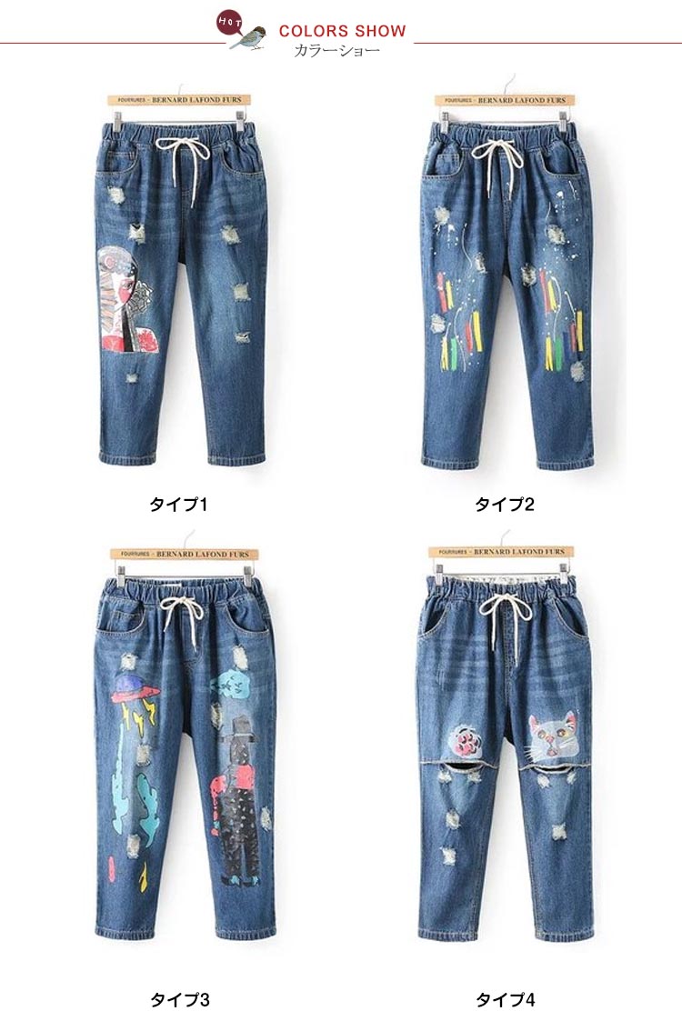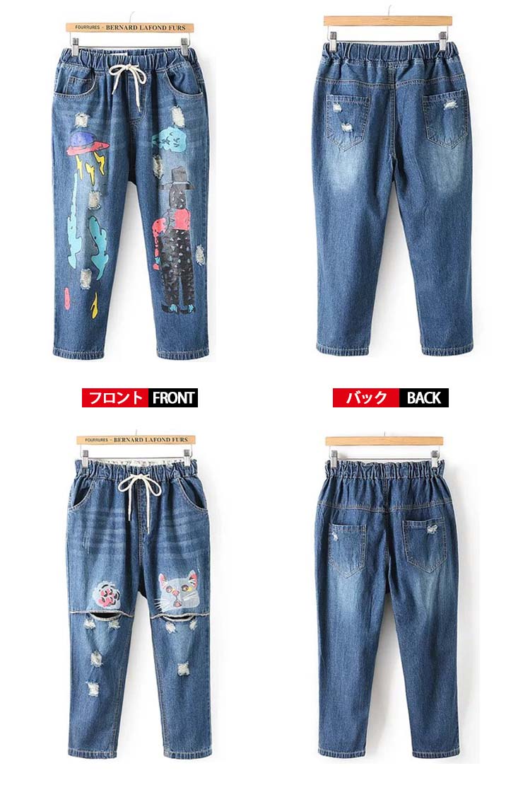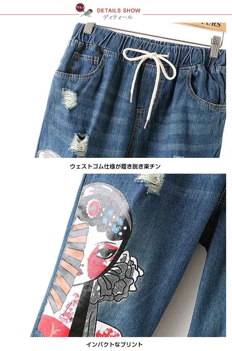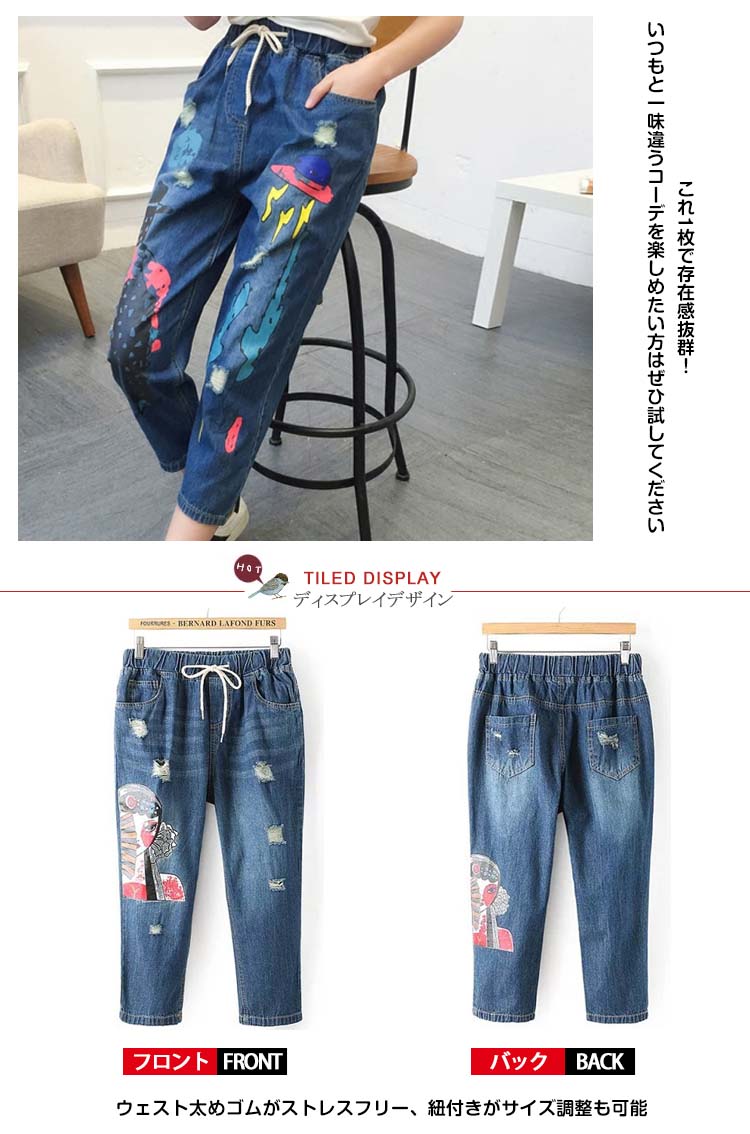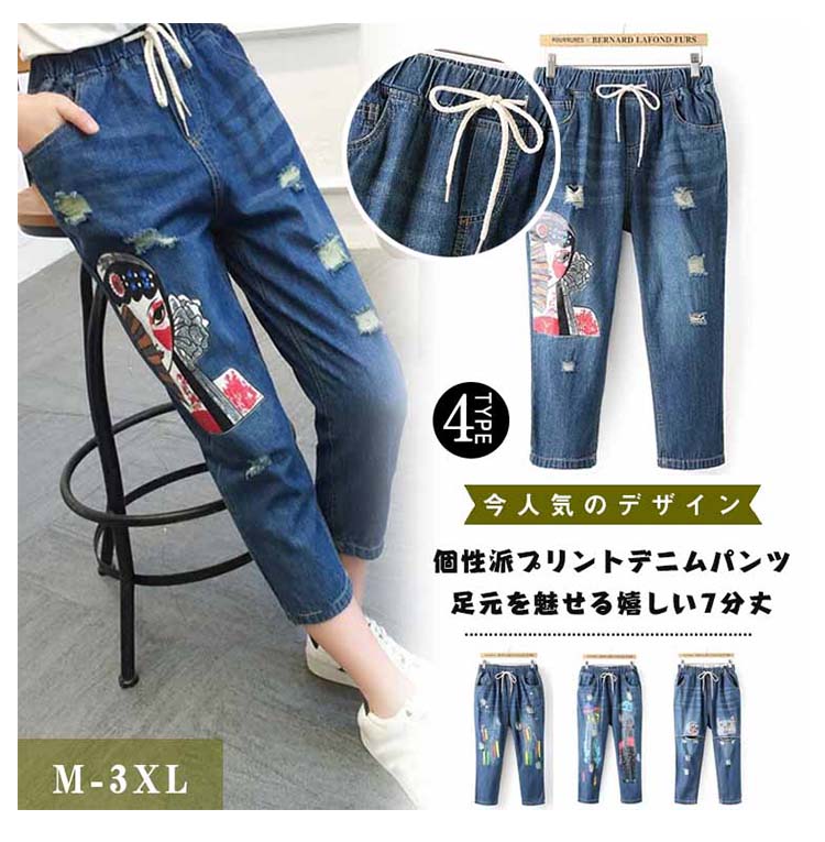 | 個性派プリントデニムパンツ足元を魅せる嬉しい7分丈今季大HITのダメージ加工デニムパンツに個性的なプリントを加え、これで他と差をつけますこれ1枚で存在感抜群!いつもと一味違うコーデを楽しめたい方はぜひ試してくださいウェスト太めゴムがストレスフリー、紐付きがサイズ調整も可能 | |