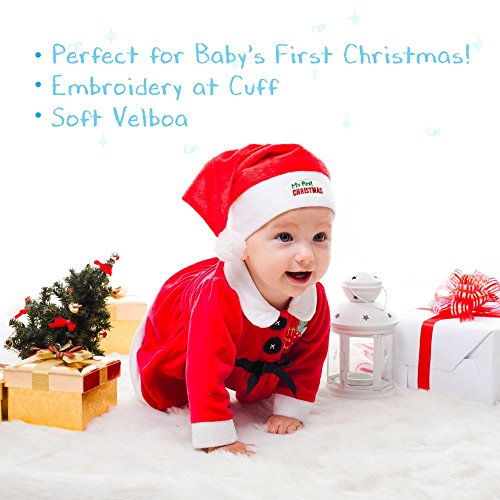 Celebrate baby's first Christmas with this adorable Santa hat. The velboa plush is as soft and flexible. "My First Christmas" is embroidered at the cuff. JennyGems provides quality home decor and seasonal products. We guarantee quality. If for any reason you are not happy, please return hassle free.