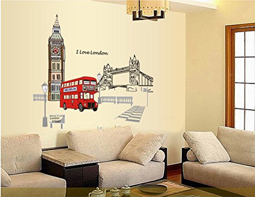 -. Title : ufengke® London Big Ben Tower Bridge Wall Decals, Living Room Bedroom Removable Wall Stickers Murals