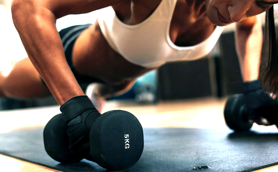 滑り止めが付いており、摩擦力増でダンベルなどのトレーニング器具の握力を高めるます。マメ防止する一方、器具の落下によるケガを避けます。