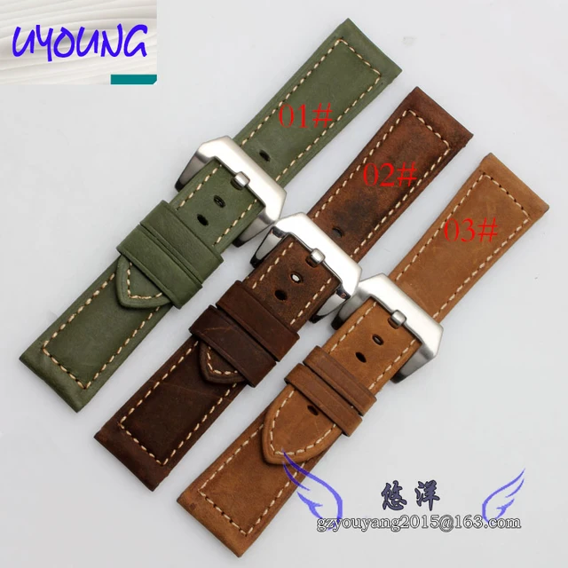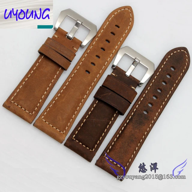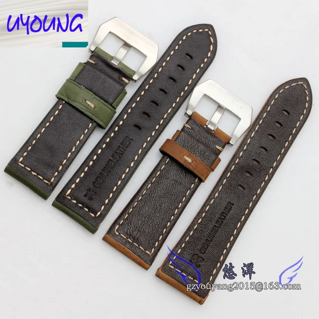 | [해외]시계 밴드 22 | 24 | 26 미리메터 새로운 남성 블랙 라이트 브라운 바느질 정품 가죽 시계 스트랩 밴드 팔찌 |