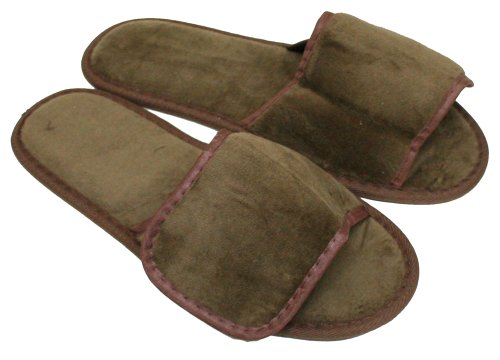 -. Brand : TowelRobes -. Department : unisex-adult -. Feature : Slippers Made From 100% Top Quality Cotton / Cotton Terry Velcro OpenToe Slippers, Non Skid / These Slippers for Unisex / One Size 11.5" Length,Non Skid / Spa & Hotel Slippers -. ProductGroup : Apparel -. ProductTypeName : APPAREL -. Size : One Size 11.5" Length -. Title : TowelRobes Terry Velcro Open Toe Unisex Slippers - Dark Chocolate