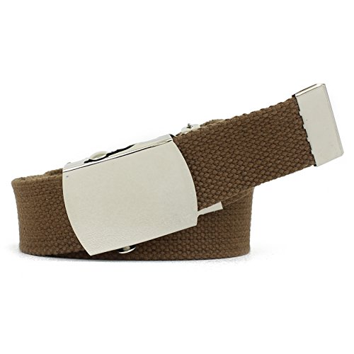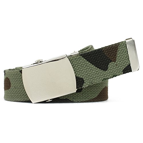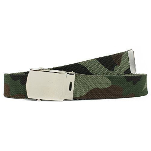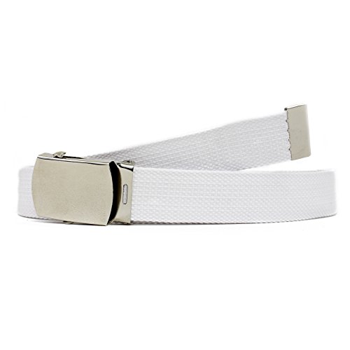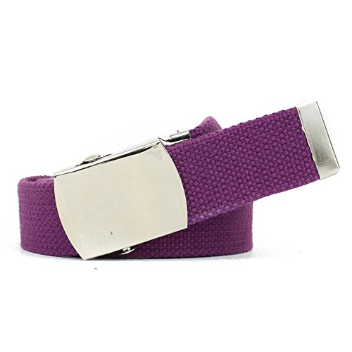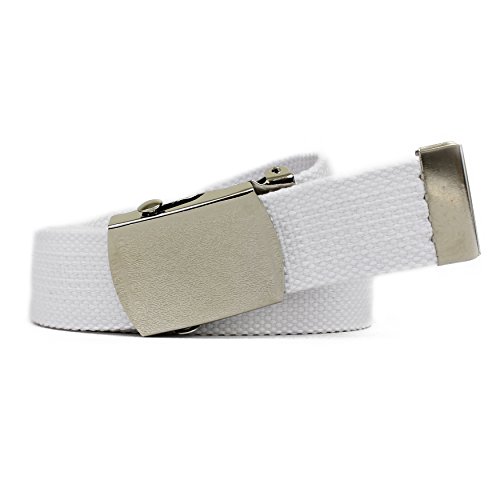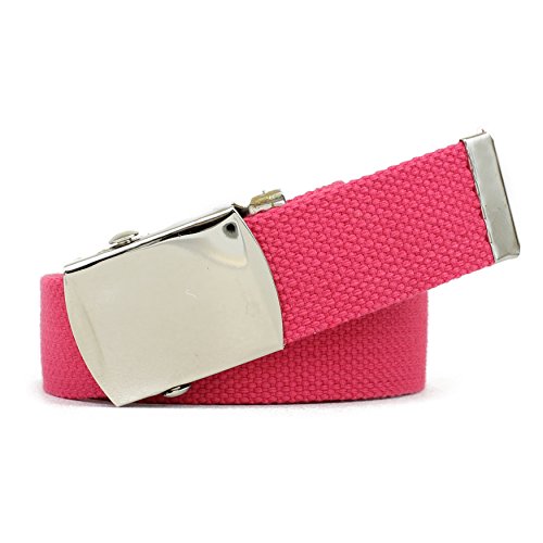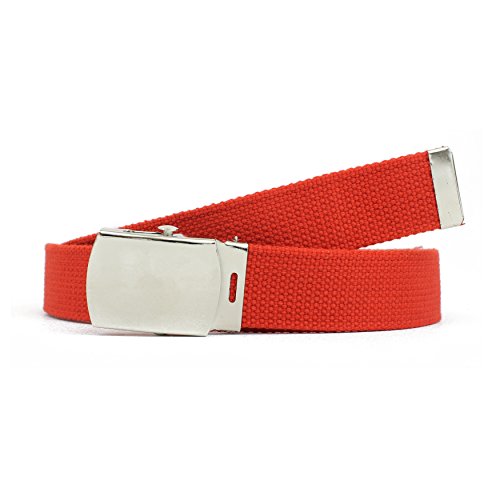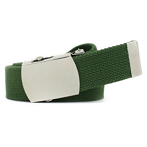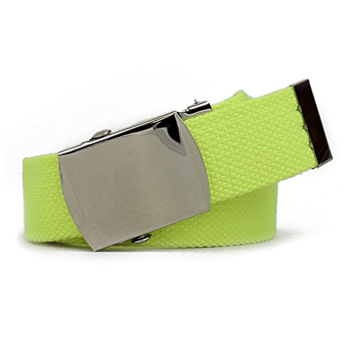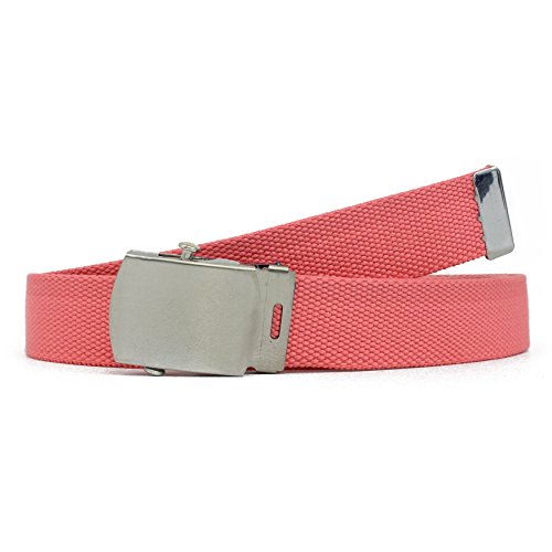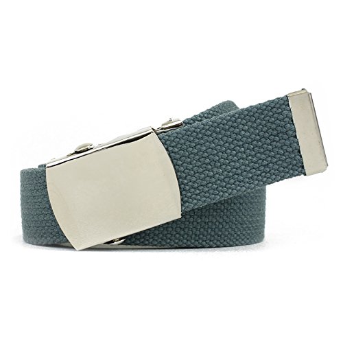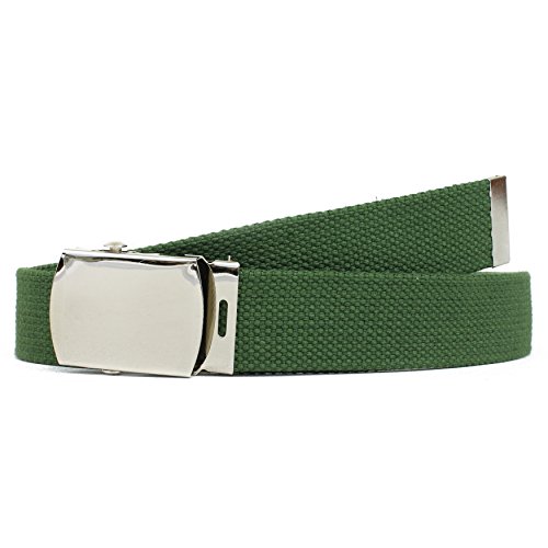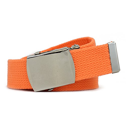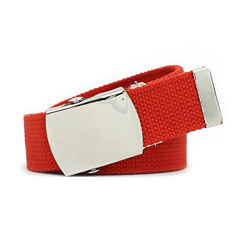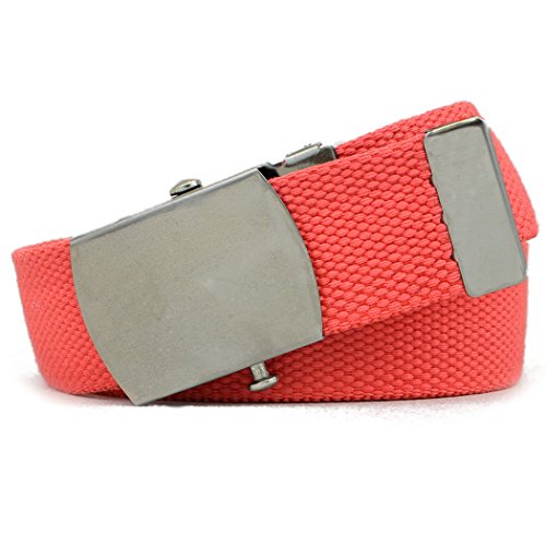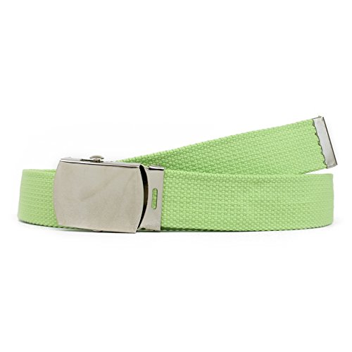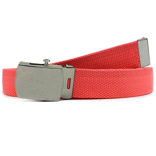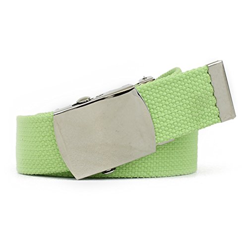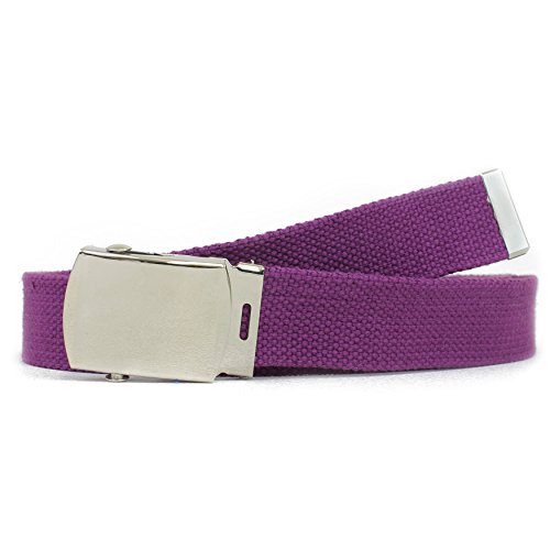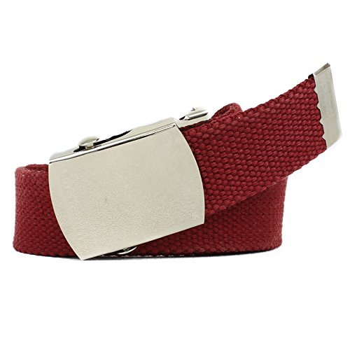 | Military Style Thick Canvas Colored Belt With Silver Sliding Buckle 45" |