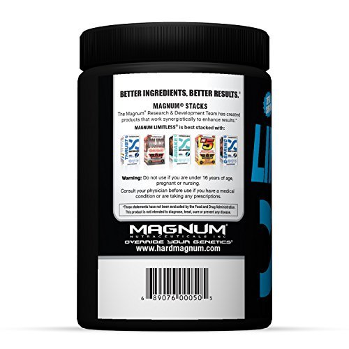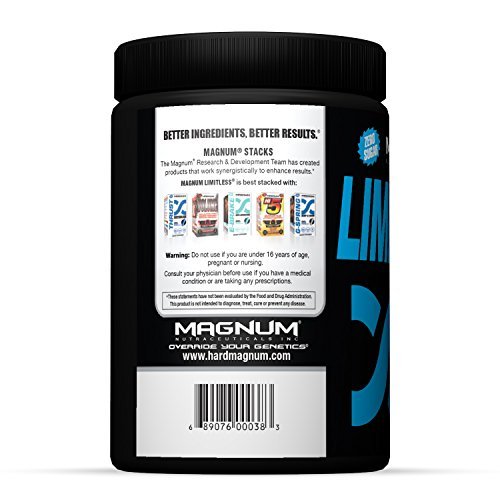 Is Magnum Nutraceuticals LIMITLESS the right pre-workout for you? We called our pre-workout Magnum LIMITLESS for a reason. You'll feel a powerful rush within minutes of gulping this delicious hyperactive cocktail. LIMITLESS is specifically formulated to provide that instant blast of intensity you need to crush personal records in the gym. With every passing second, you'll feel more energetic, leading to unimagined ferocity in the gym. Did we mention the insane pumps? With every rep you can feel the blood expanding your blood vessels and rushing through to feed your muscles. Getting jacked is our priority, which is why we packed our formula with unique ingredients to make sure that you will look leaner and more muscular than your wildest dreams. Take your workout to the limit and beyond. Become limitless.Feature