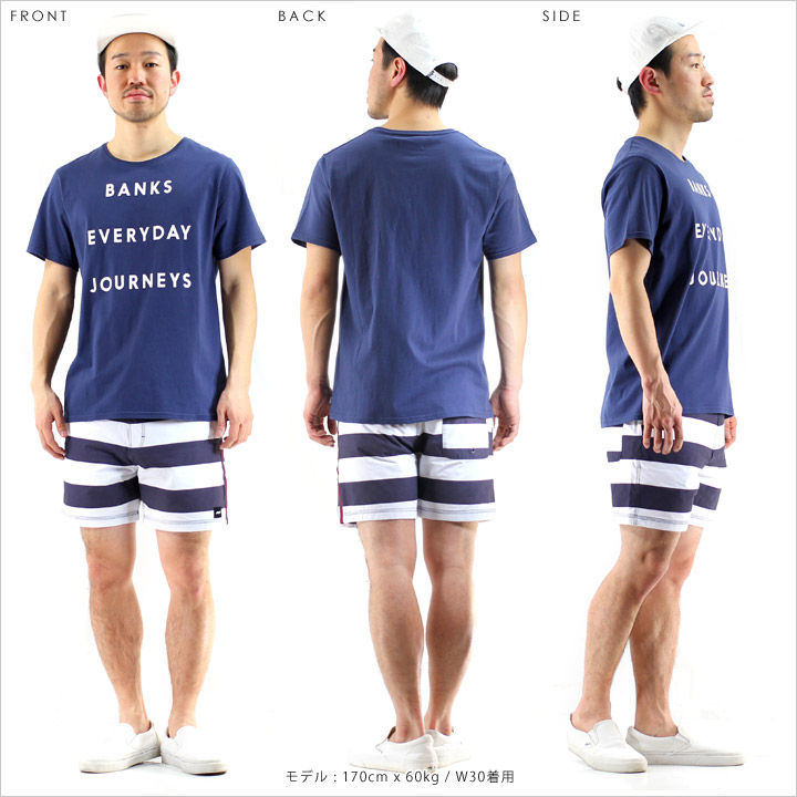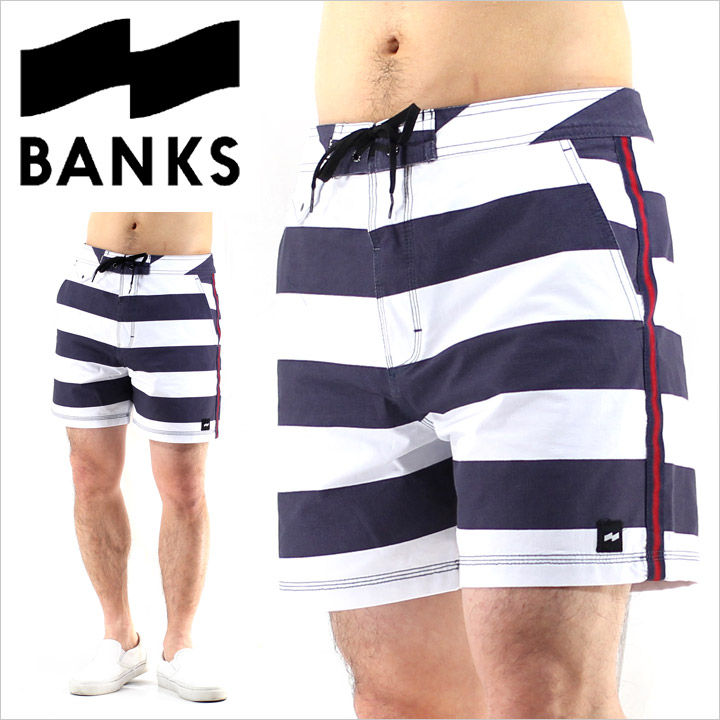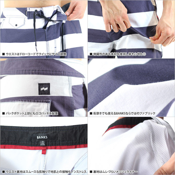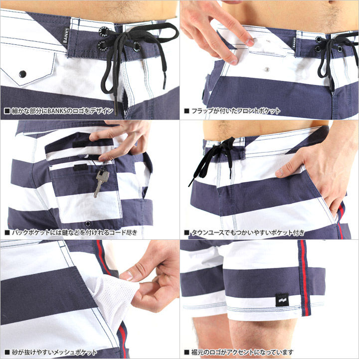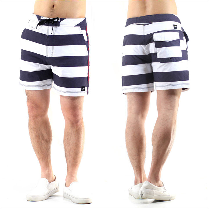 ブルーxホワイトのボーダーが爽やかな水陸両用ボードショーツ。