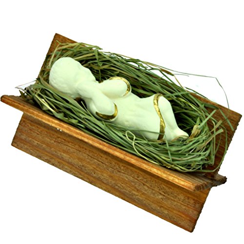 Baby Jesus Christ in Crib Nativity Figurine on Natural Hay